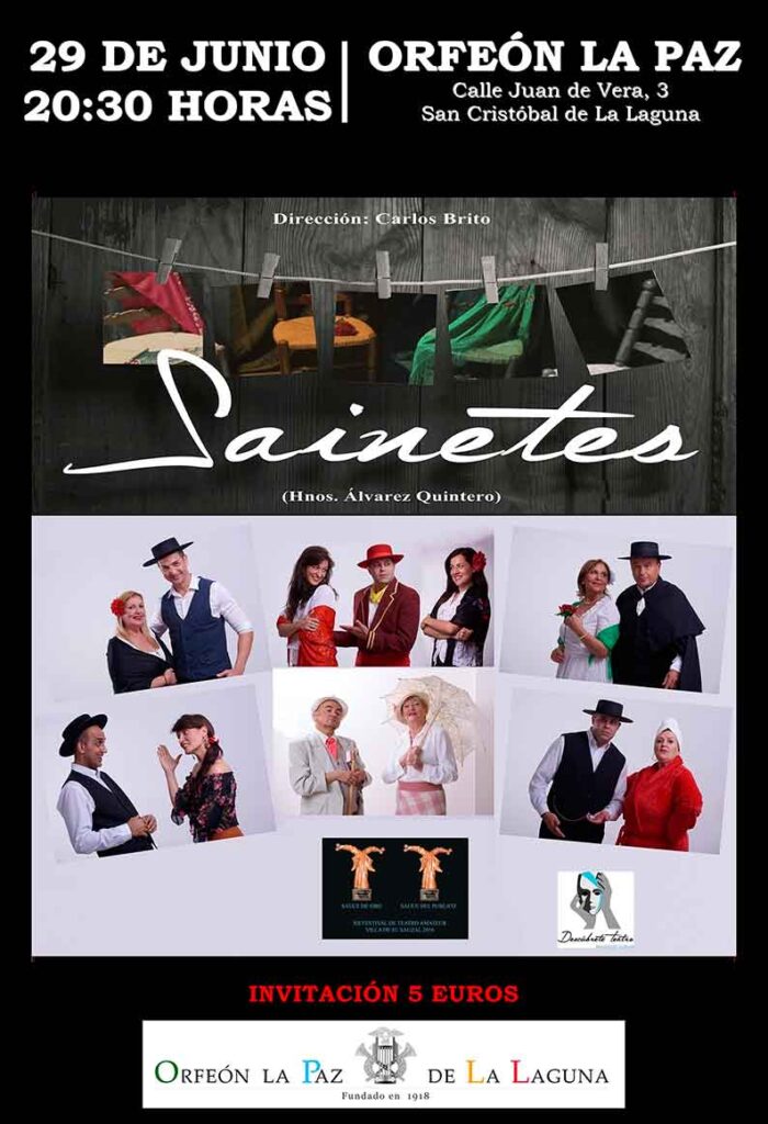 El viernes 29 de junio, a las 20.30 horas, Descrubrete Teatro representa su obra «Sainetes», en el Teatro del Orfeón La Paz. Este acto requiere invitación.